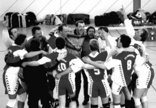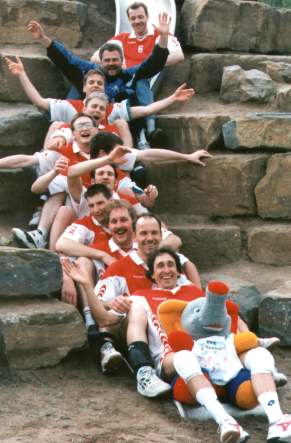 Und dann begann das lange Abwarten: spielt Frankfurt die Relegation oder nicht? Aus der Mainmetropole bekam man nur zu hören: “Trainiert mal weiter, es kann sein...”. So absolvierte das Team zwar immer noch mehr oder weniger motiviert die beiden Trainingseinheiten, die aus Fußball, Fußball und Fußball bestanden, pro Woche, doch der Glaube an einer Teilnahme bei der Relegation schwand von Woche zu Woche. Ironie des Schicksals ist dann die Tatsache, daß Eintracht immerhin schon eine Woche vor der Relegation in Stuttgart endgültig die Absage signalisierte. In Klarenthal hatte man aber gerade einen Tag zuvor in einer Mannschaftssitzung die Weichen für eine weitere Regionalligasaison gestellt. Trainer Georg Betz, der mit seinem fünfjährigen Engagement entscheidend für die positive Entwicklung des Teams verantwortlich war, wollte sich neue Herausforderungen suchen und stand nicht mehr als Coach zu Verfügung. Mit Alexej Degtjarjow schlugen dann einige Spieler den neuen Trainer vor, der nach kurzer Diskussion noch am gleichen Tag vom Spieler zum Chefcoach befördert wurde und die Saisonvorbereitung für eine weitere Regionalligasaison leiten sollte. Zu diesem Zeitpunkt wußte keiner, daß Frankfurt tags darauf endgültig absagte und der TVK die Möglichkeit hatte, zum Aufstiegsturnier zu fahren.