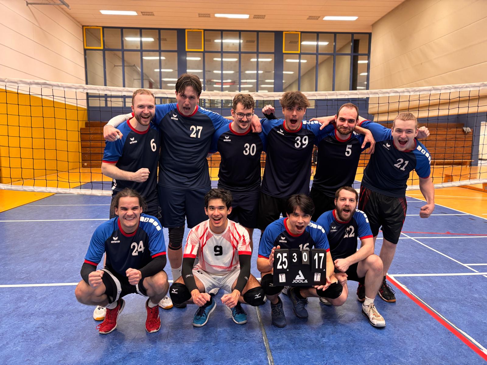 Der zweite Satz verlief dabei von Beginn an kontrollierter. Die Herren 3 fanden immer besser in ihr Spiel und nutzten die Schwierigkeiten der Gegner souverän aus, sodass der Satz klar mit 25:17 an den TVK ging.
